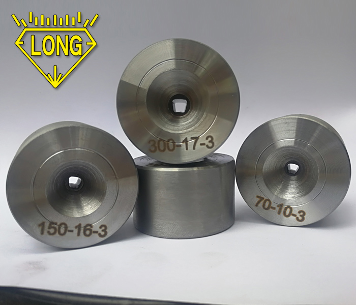 CVD拉丝模采用的模芯是100%的金刚石在炉内生长形成,无添加剂和粘合剂,它具有很高的磨耗比,耐磨性能好,光洁度高,磨耗均匀等特点。因为CVD拉丝模耐温达1000°C-1200°C,是热拉钨钼丝最理想的产品。规格范围0.06mm-2.00mm